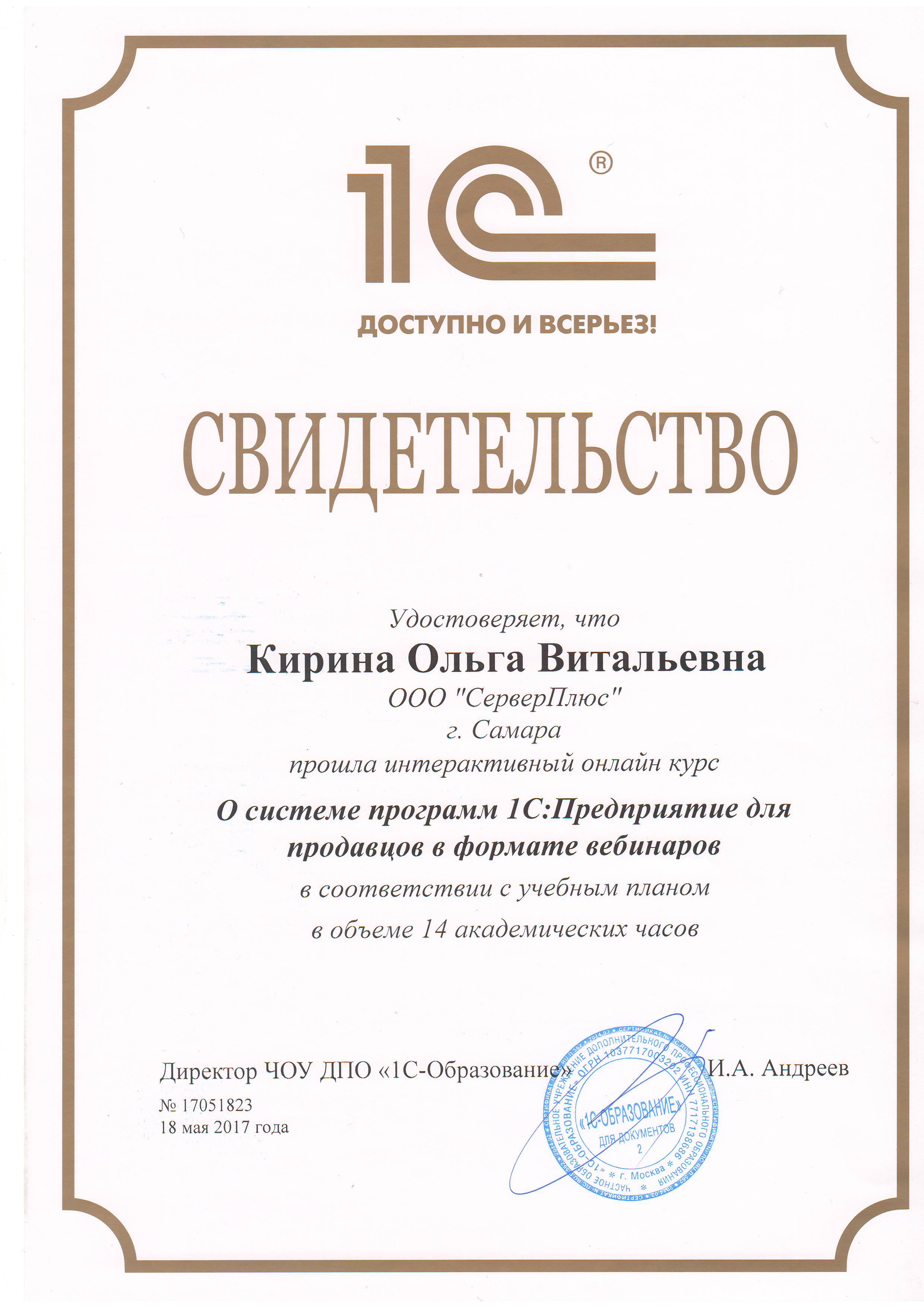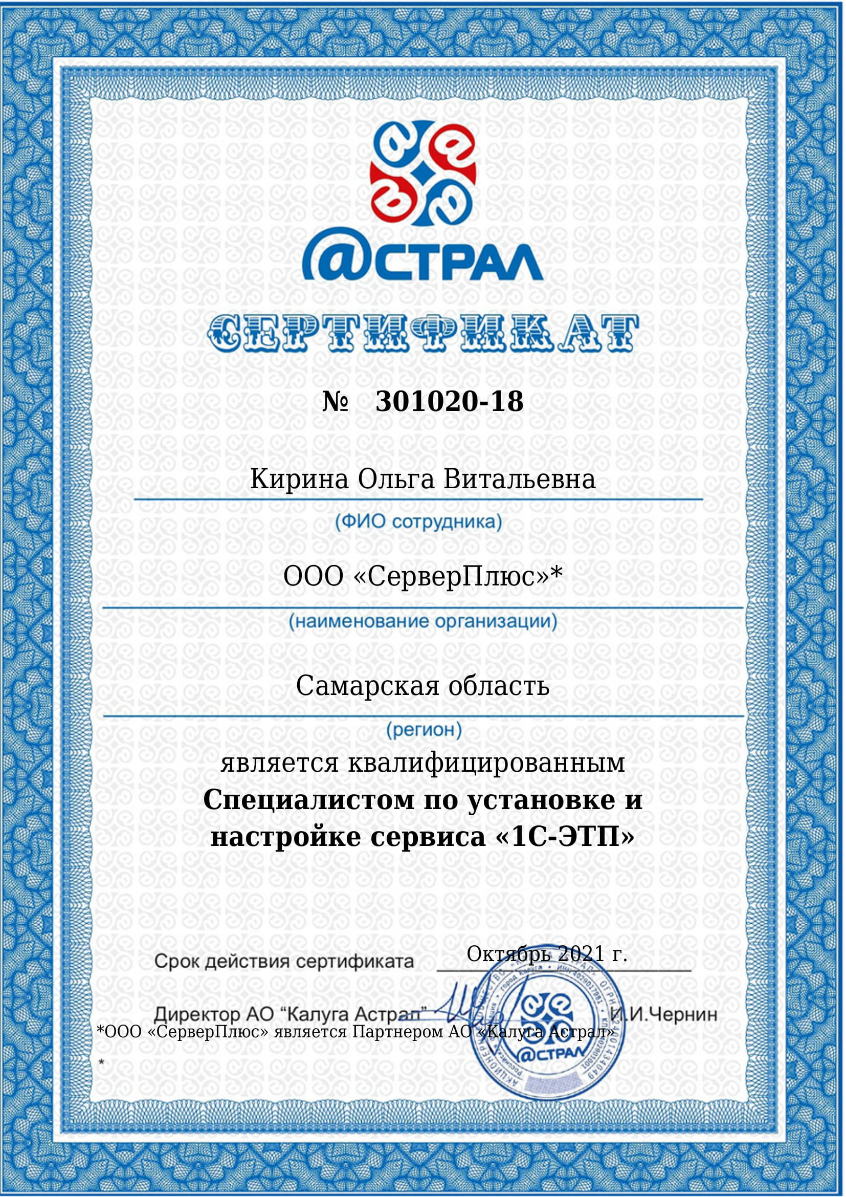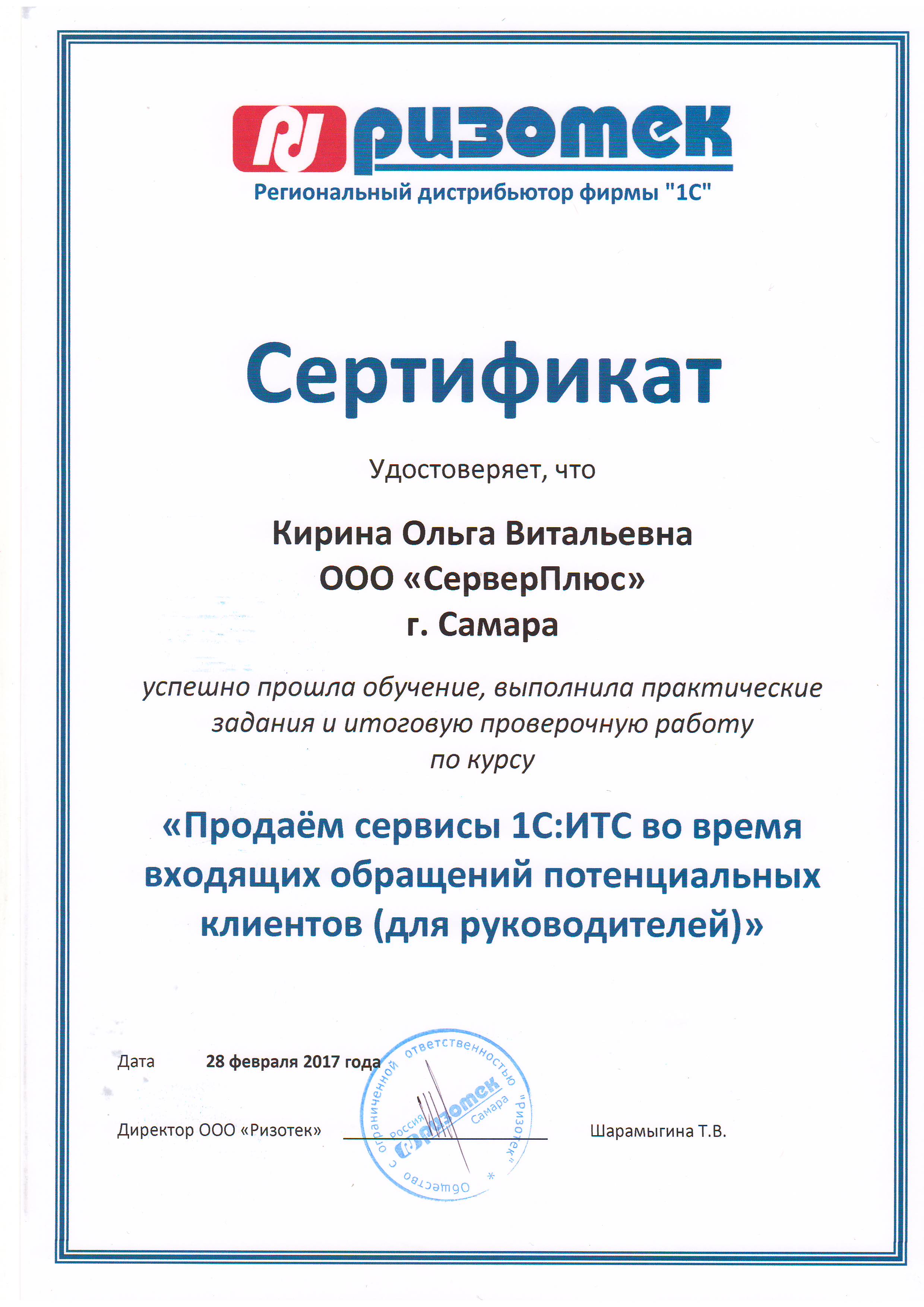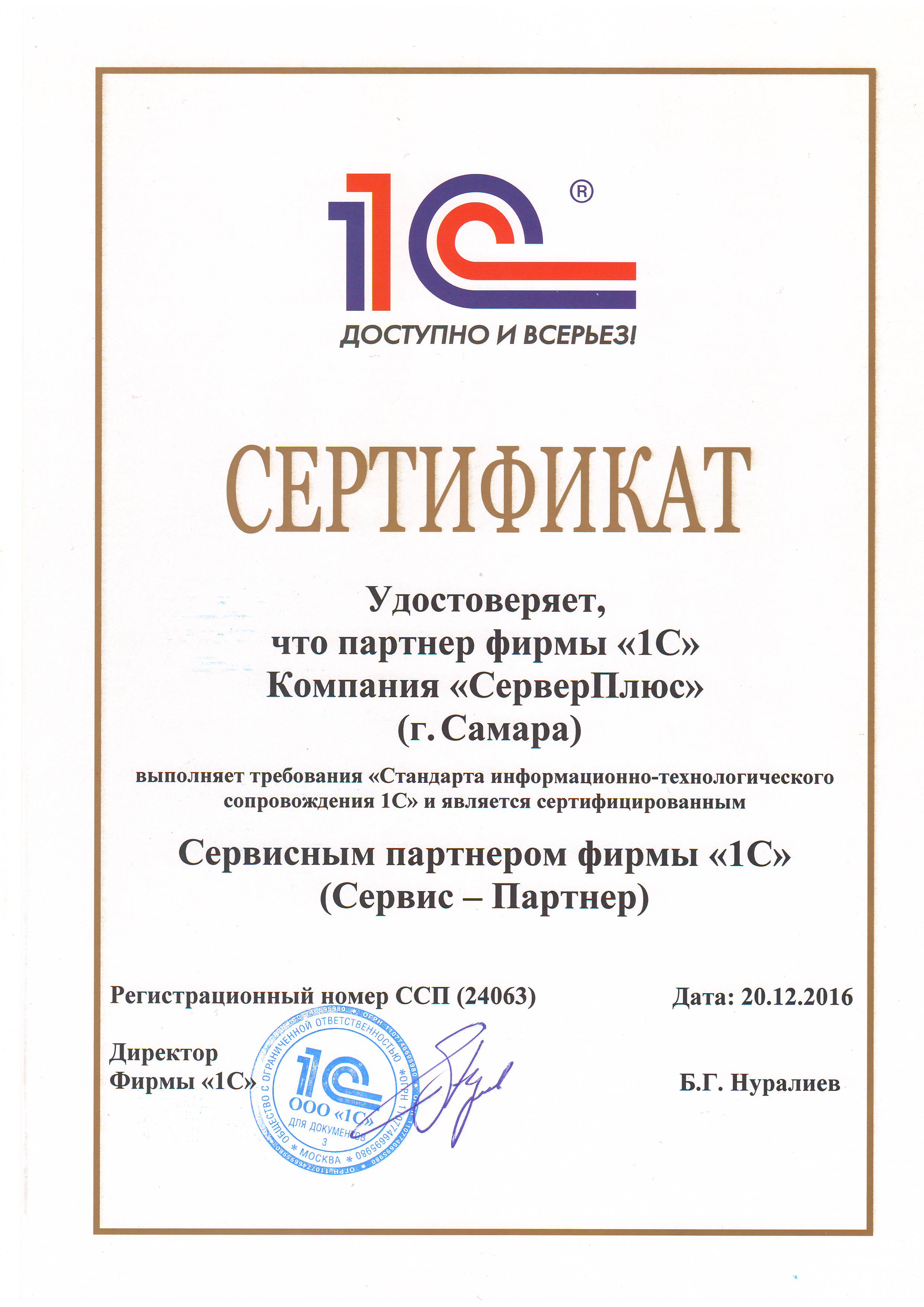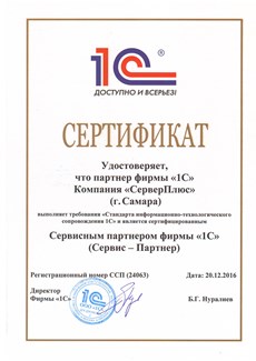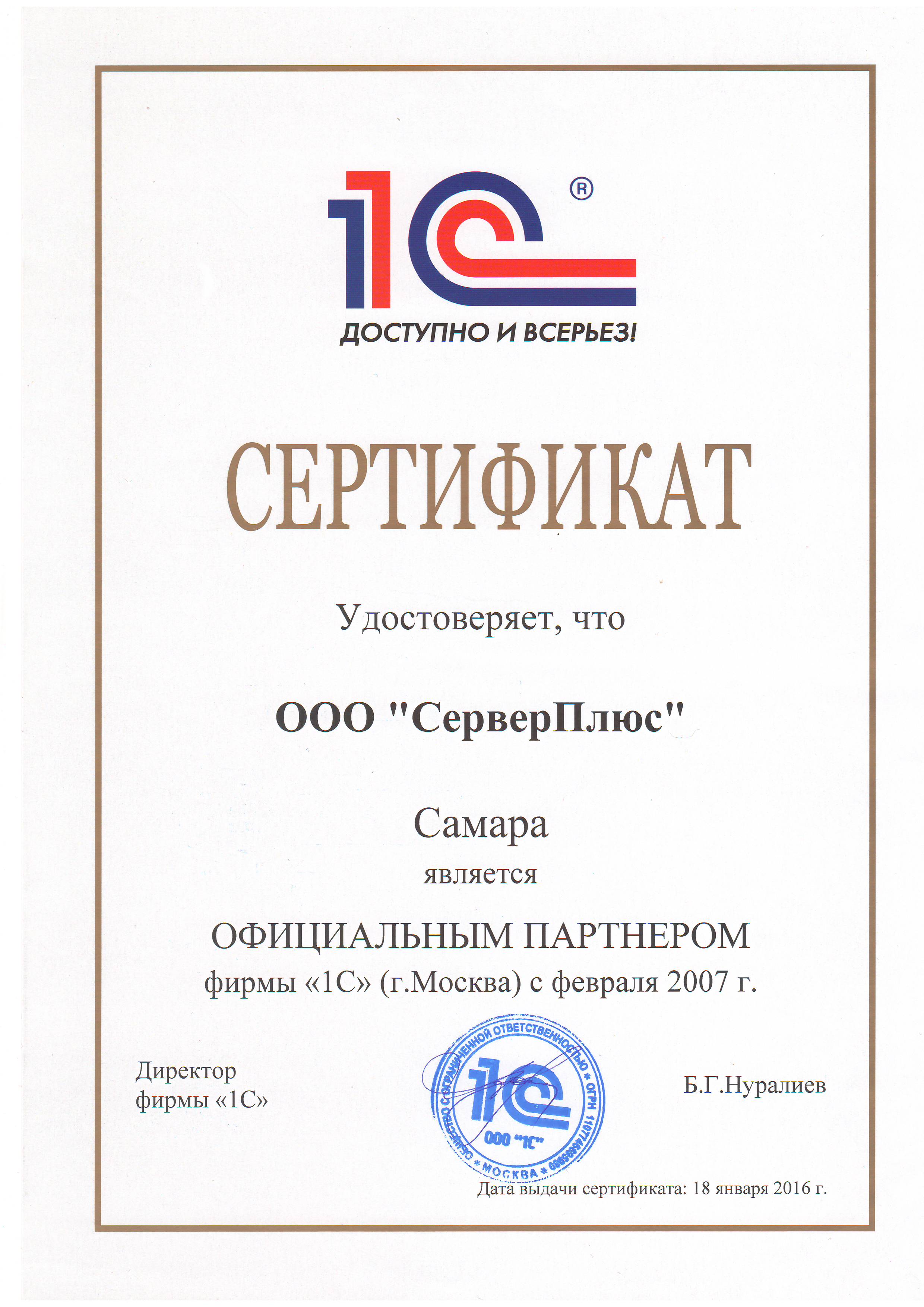 ООО «СерверПлюс» является официальным партнером компании 1С
